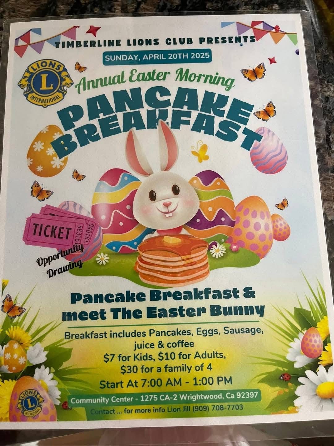 THE LIONS CLUB & WWPOA PRESENT Easter Egg Hunt April 20th Hollis Stewart Park 11am - 1:00pm All Wrightwood Families Invited! We'll |